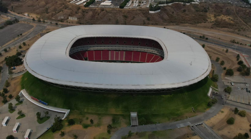 Fotografía aérea del estadio Guadalajara, México, el martes 22 de julio de 2025.EFE El sorteo del repechaje para el Mundial 2026 se celebrará este jueves 20 de noviembre en la sede de la FIFA en Zúrich, las 07:00 de Ecuador.